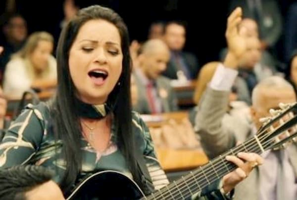 A deputada Lauriete (PL-ES) cantava uma música gospel ao microfone.