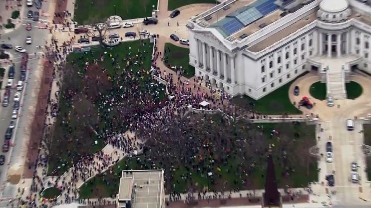 A manifestação foi organizada e contou com a participação de pessoas que se opõem à ordem Mais segura em casa do estado e desejam permitir que mais empresas reabram mais cedo do que seria permitido atualmente. O pedido expira em 26 de maio.