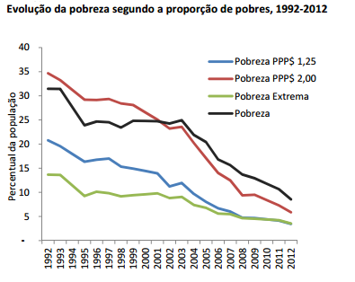 Em 2002, cerca de 10% de nossa população vivia na pobreza extrema, e 25% na pobreza. Hoje esses números são próximos de 5% e 10%, respectivamente. E é isso o que conta de verdade, emprego e renda.
